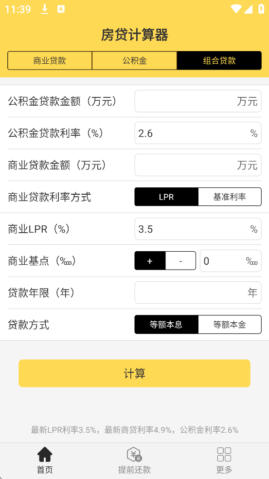 1、多类型贷款计算:支持商业贷款、公积金贷款和组合贷款,满足不同购房需求。