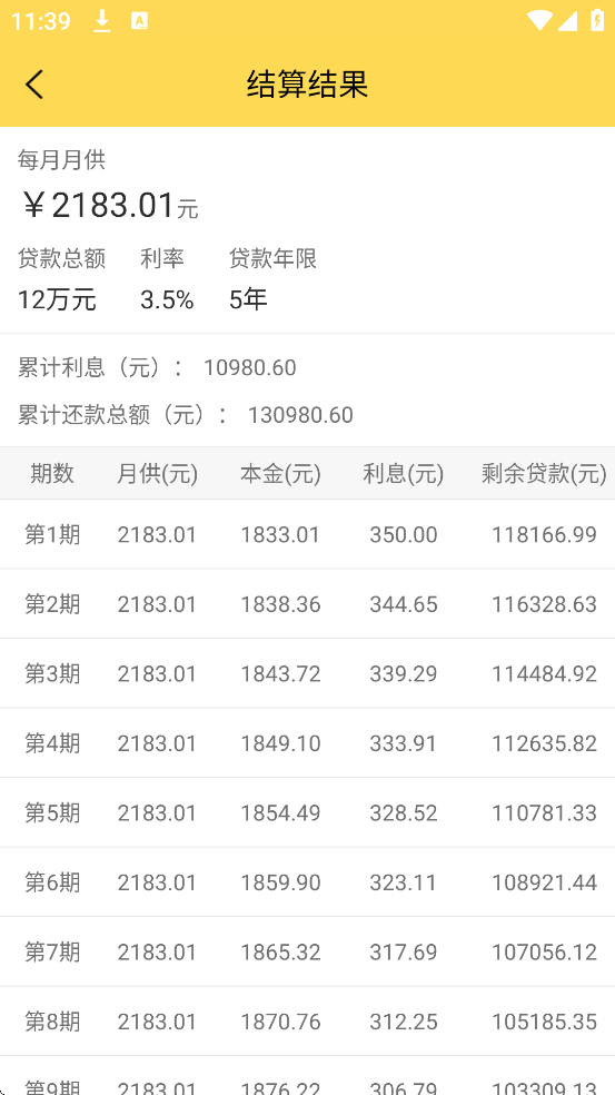 4、结果清晰展示:提供等额本息/本金的详细还款报告,数据直观。