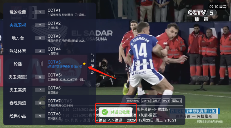 3、长按电视频道就可以收藏了。