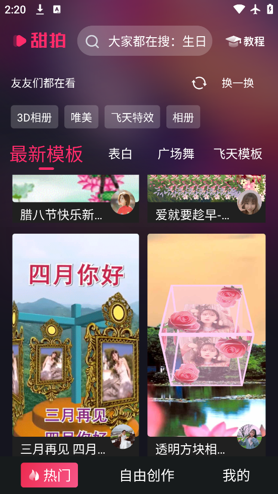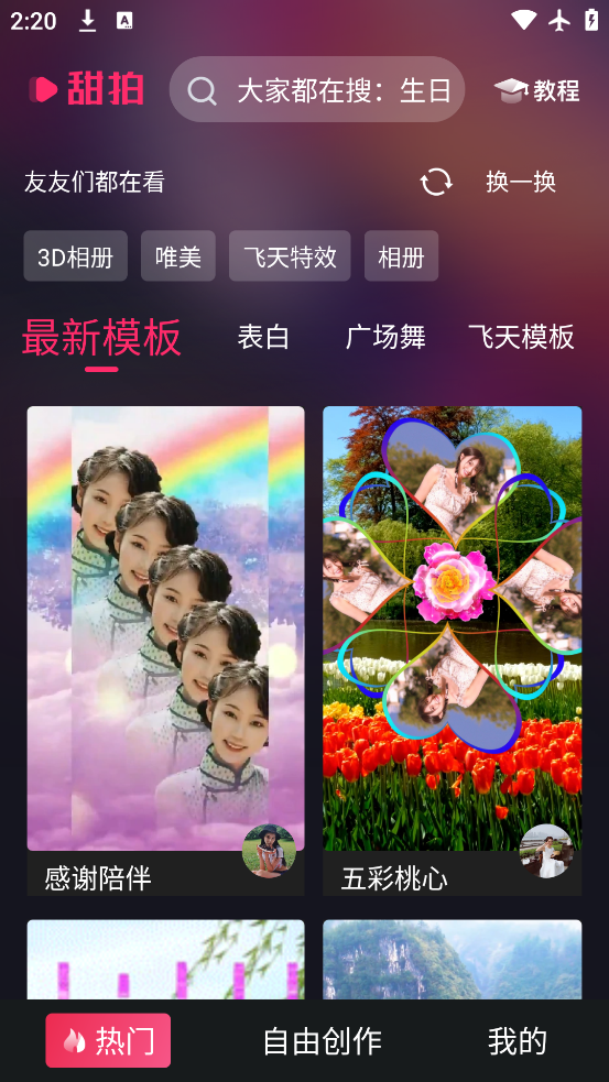 甜拍app官方版下载是一款适合年轻人日常短视频创作的应用,提供飞天、分身、一键抠图等特效功能。用户可以通过丰富的模板快速生成创意视频,轻松完成热门特效玩法,无需复杂操作也能制作高质量作品。应用支持一键分享至社交平台,满足记录生活与展示个性的需求。