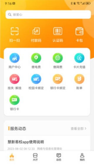 3、平台聚合更多校园卡功能服务,如预定、考勤、迎新注册离校、缴费、门禁、校友等。