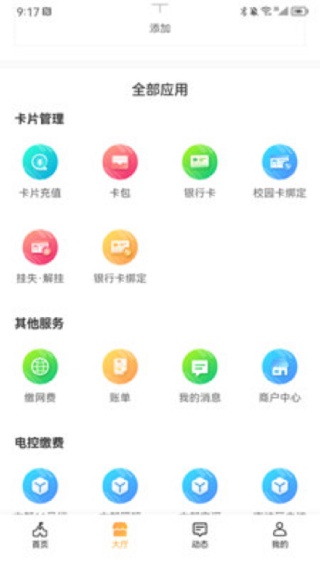 2、平台聚合更多校园卡功能服务,如预定、考勤、迎新注册离校、缴费、门禁、校友等。