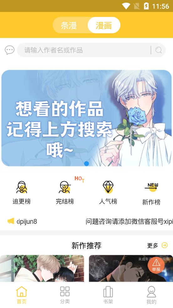 打开应用后,首页会推荐热门漫画,支持按分类(如热血、恋爱、玄幻)筛选。