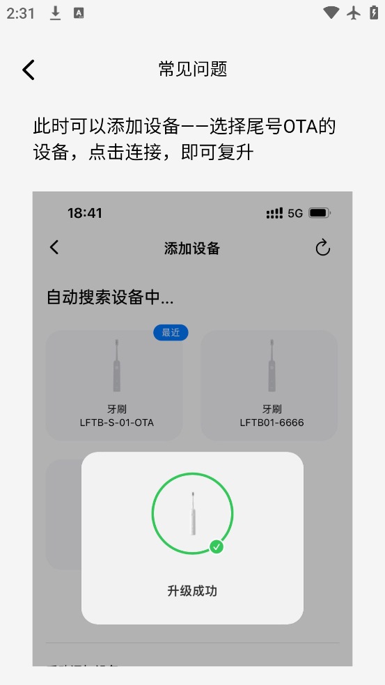 3、快速连接徕芬电动牙刷,实现远程开关、模式切换、强度调节等操作。