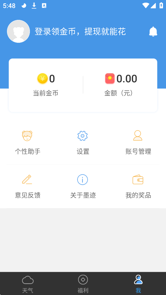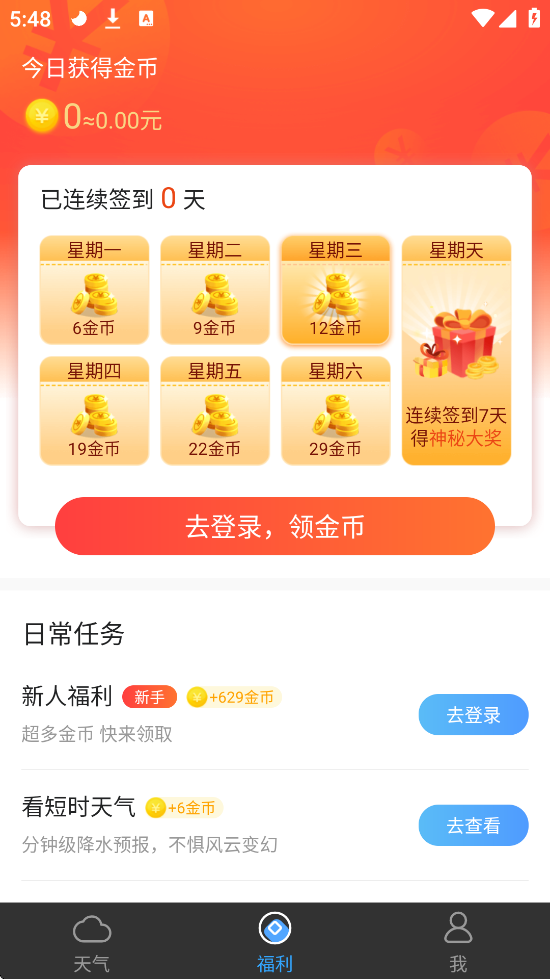 3、看天气得现金:每日登录领金币,可兑换现金并提现至支付宝。