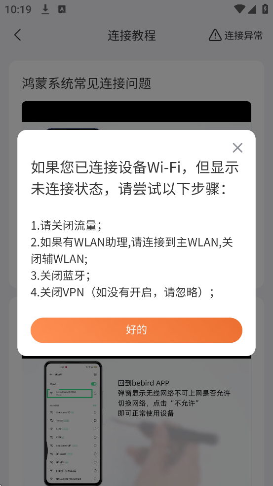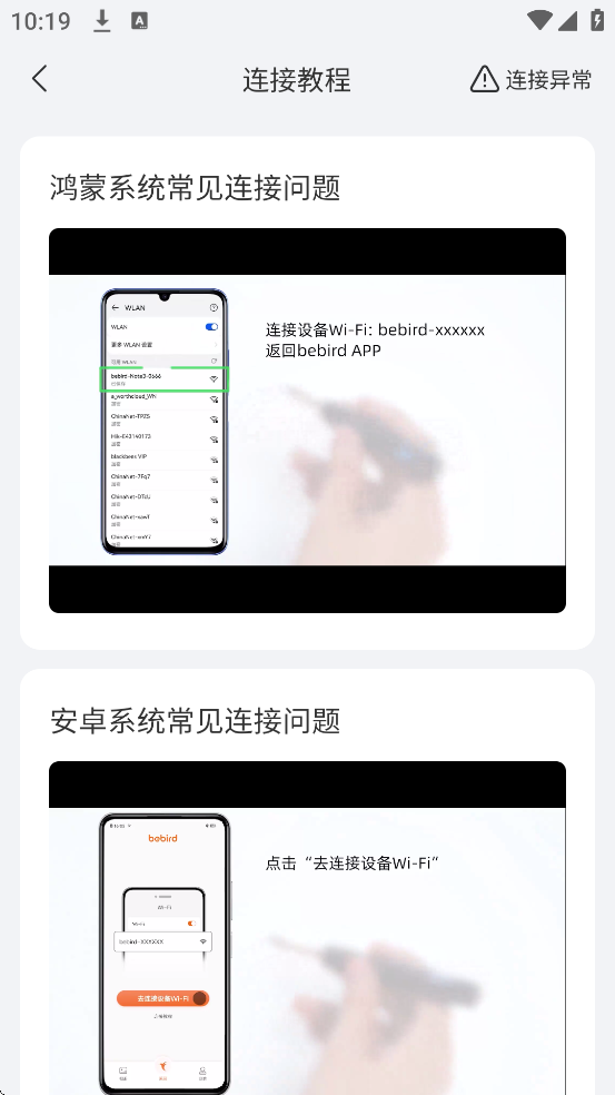 打开手机WiFi,搜索设备专属WiFi(如“bebird-××××××”)并连接。
