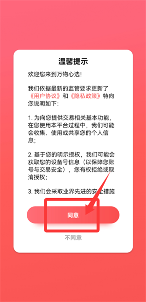 1、首次启动需阅读用户协议并点击同意,进入登录页面。