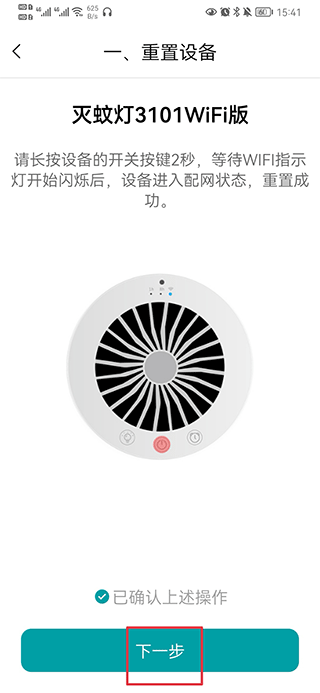 3、按照提示重置设备后,点击下一步。
