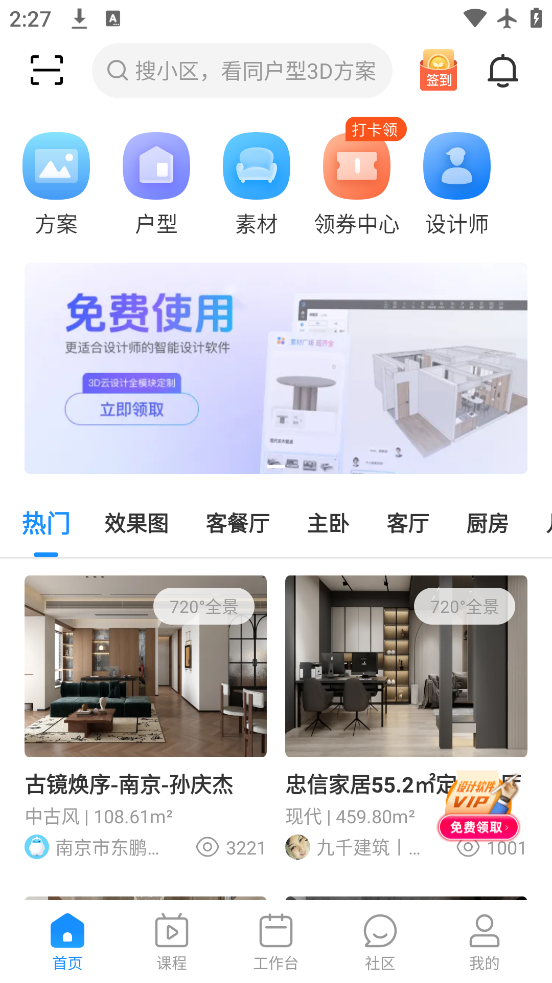 三维家设计师app下载安装最新版是一款非常好用设计师软件。这里有很多素材很多装修案例可以给设计师灵感去创作,有设计课程,老师都是行业资深人士,让你轻松学习到设计干货,还有专属的营销方法帮助你快速找到客户。