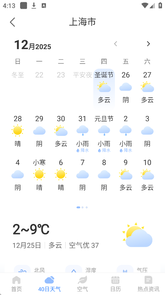 今日天气app是一款专注于提供精准、实时天气信息的移动应用,为用户带来全方位的天气服务体验。它覆盖全球多个地区,支持实时更新天气数据,包括温度、湿度、风速、降水概率等关键指标,帮助用户轻松掌握当前天气状况。app还提供未来几小时及多日的天气预报,通过直观的图表和简洁的文字描述,让用户提前规划出行或活动。此外,它整合了空气质量指数、紫外线强度等健康相关数据,并支持个性化推送提醒,如恶劣天气预警,确保用户及时应对变化。界面设计友好,操作流畅,适合日常使用,是您掌握天气动态、提升生活便利性的贴心助手。