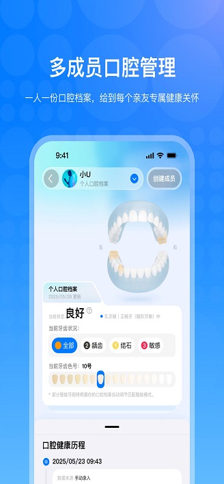 1、口腔健康追踪记录:详细记录每次刷牙信息,形成长期护理数据档案,用户可通过历史数据观察口腔健康变化趋势,为调整护理习惯提供参考依据。