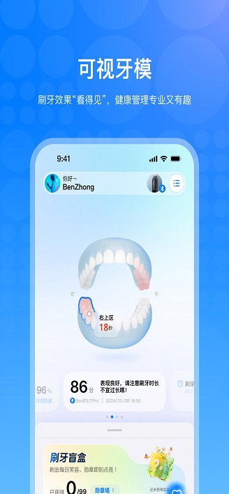 3、数据化刷牙监测:实时同步并展示刷牙时间、清洁度、刷牙方式等核心数据,用户可通过 “刷牙详情” 板块直观了解每次刷牙的具体情况,避免清洁不到位或过度清洁的问题。