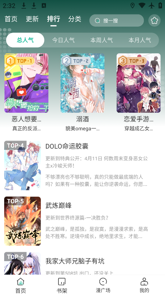 2、简洁清爽的阅读界面设计,让每一位用户能够一目了然所有的漫画分类,方便选择喜欢漫画资源。