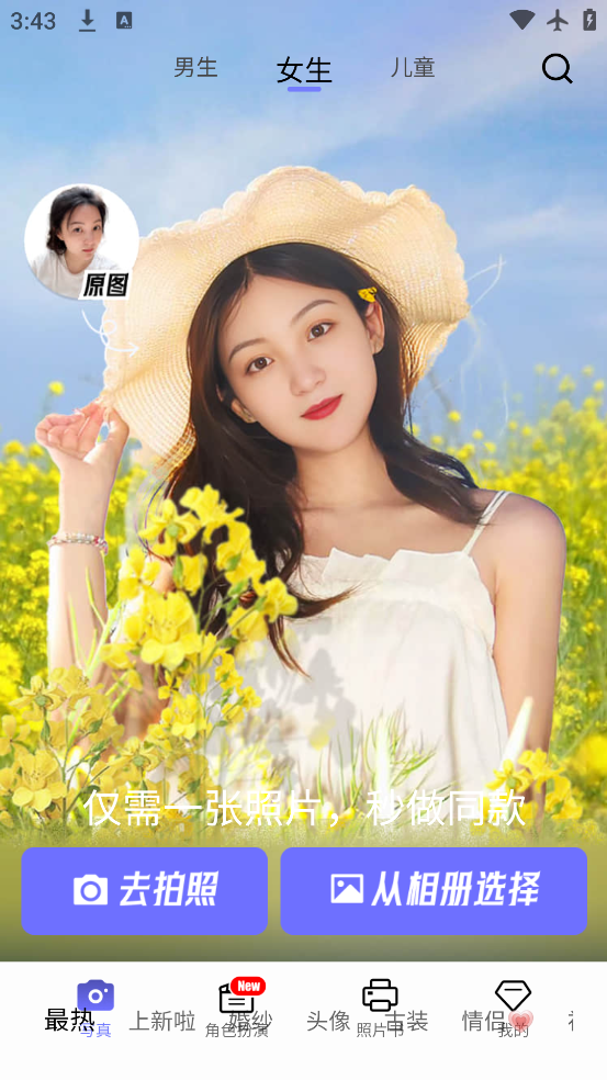 4、支持视频与图片的人脸替换功能,在动态场景中实现换装,增加了拍摄的趣味性与互动性。
