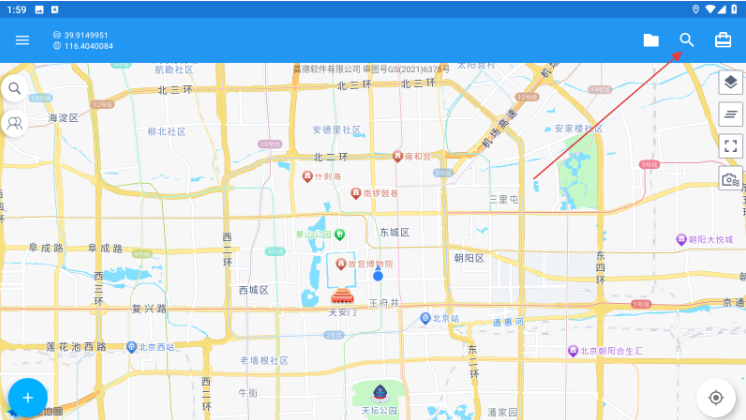 1、点击右上角【搜索】图标,进入经纬度查询页。