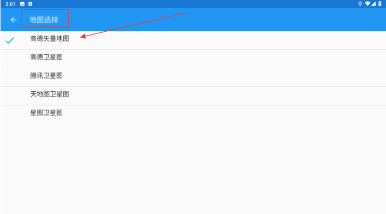 3、进入【地图选择】,切换高德矢量/卫星等地图等其他地图。