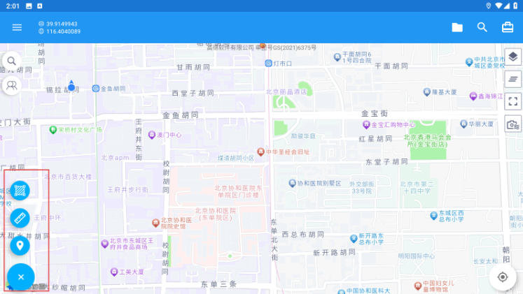 4、左侧工具栏,用测量、标记等工具辅助地图操作。