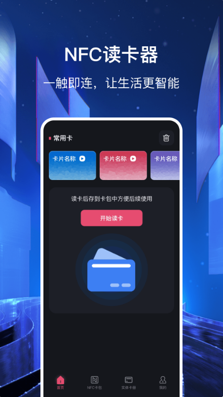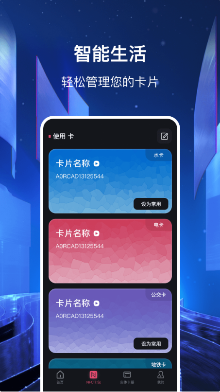 NFC智能一卡通APP是一款帮你把公交卡、门禁卡、水卡等各类NFC实体卡“装进”手机里的实用工具,支持快速读卡、集中管理、批量操作,还能手动录入银行卡、停车卡等非NFC卡信息,界面简洁、完全免费,出门带手机就能替代一堆实体卡,生活更轻松。