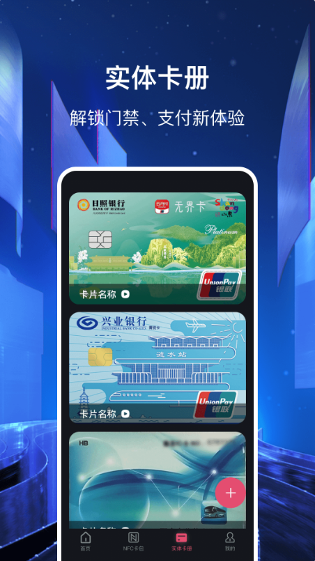 1、NFC卡管理:支持添加、删除、编辑门禁卡、公交卡等NFC卡片信息,可查看卡号、有效期、余额等。