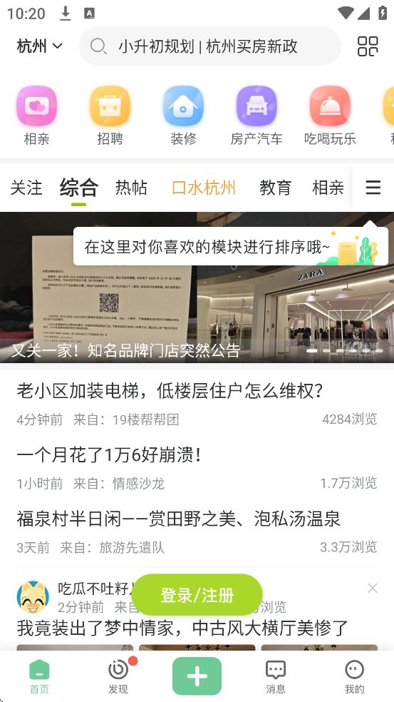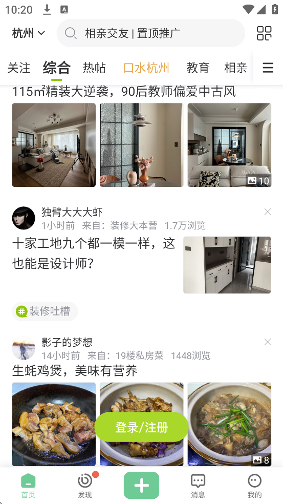 打开App后,首页会按城市推荐热门帖子,比如杭州、宁波等。
