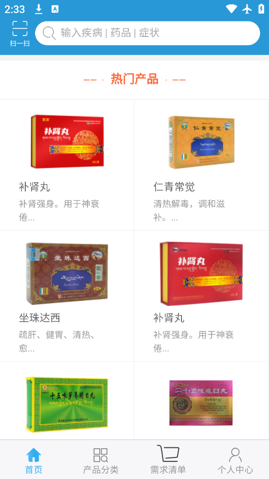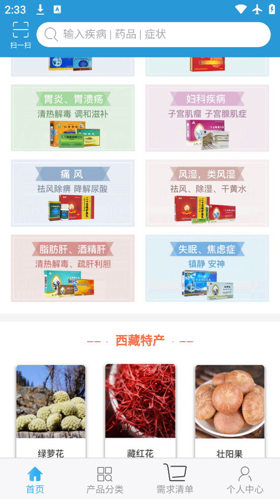 3、首页还提供西藏特产、热门产品专区,点击即可浏览常见药材与热销药品,方便快捷。