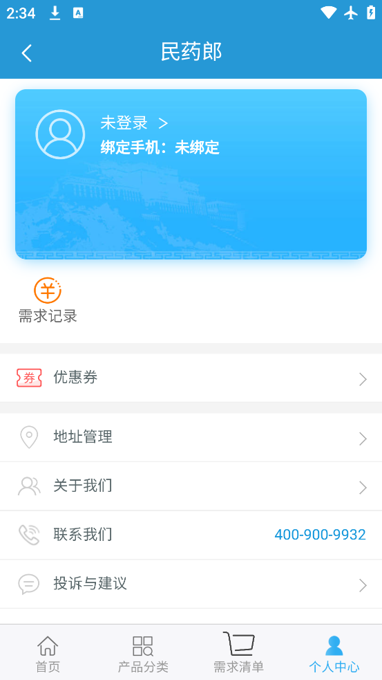 5、进入个人中心页面,可管理需求记录、优惠券、收货地址,同时还能查看协议与联系客服。