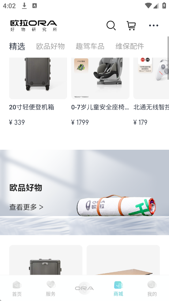 欧拉ORA软件安卓版下载安装是一款有关智能汽车服务软件,软件内为用户提供线上维修业务预约,同时软件内为用户提供海量智能产品购买,更多惊喜等你来发现,如此好用的软件,你还等什么?感兴趣的小伙伴快快下载前来体验吧!
