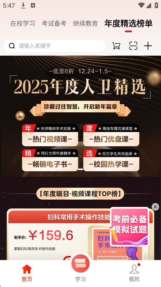 人卫软件最新版本下载安装是一款教育学习软件,软件内为用户提供丰富的医学方面的相关知识,同时软件内为用户提供丰富的医学题库,方便用户及时进行巩固练习,更多惊喜等你来发现,如此好用的学习软件,你还等什么?感兴趣的小伙伴快快下载前来体验吧!