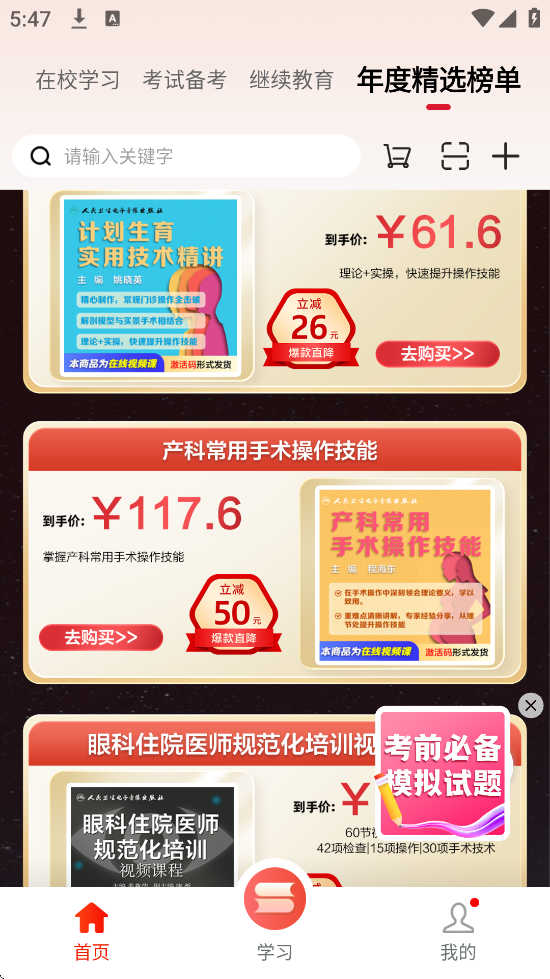 2、一站式医学教育服务:聚合人卫医考学堂、人卫电子书、人卫增值服务、人卫慕课、人卫教学助手等多个应用功能。