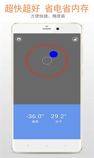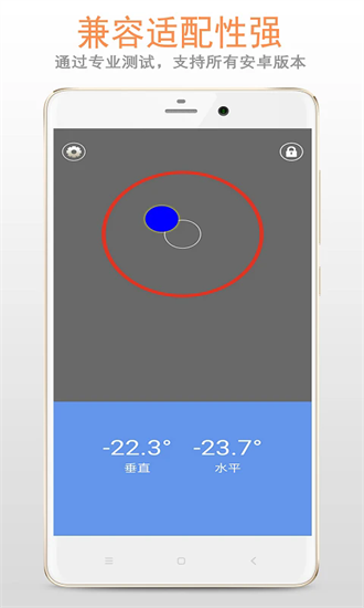 屏幕上通常会有指示线和小气泡,当它们都居中时,手机就是水平的。