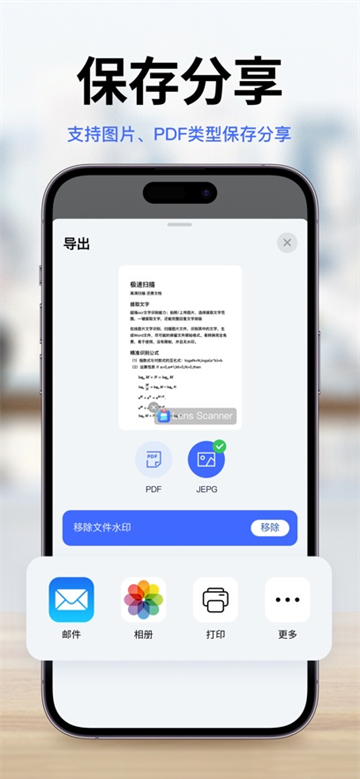 它会自动拉直歪斜的纸、去掉背景,生成高清图片或PDF。