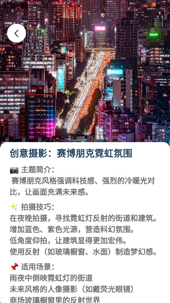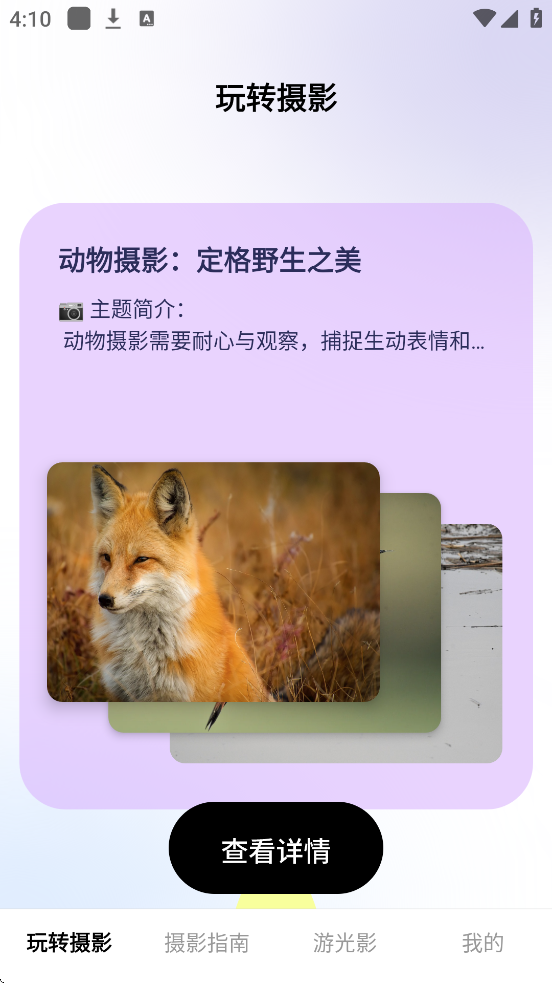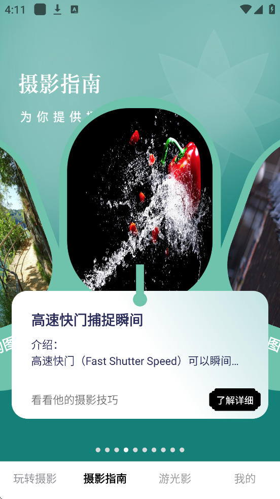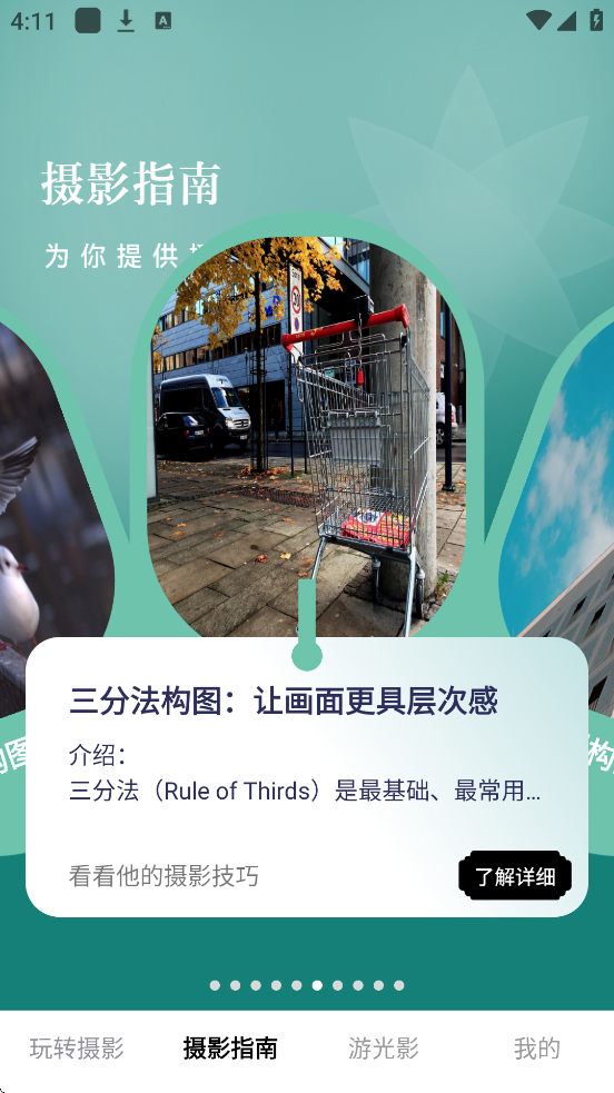 4、通过“摄影指南”板块,用户可系统性地学习从基础到高级的摄影知识,涵盖光线运用、镜头选择、色彩搭配等核心技巧。