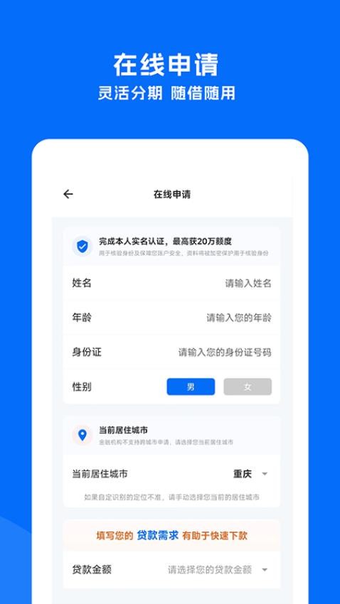 1、操作便捷:全程线上申请,审核通过后资金即时到账,无需填写繁琐资料。