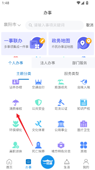 1、进入i襄阳App后点击下方导航栏的办事功能