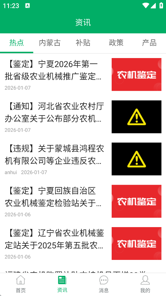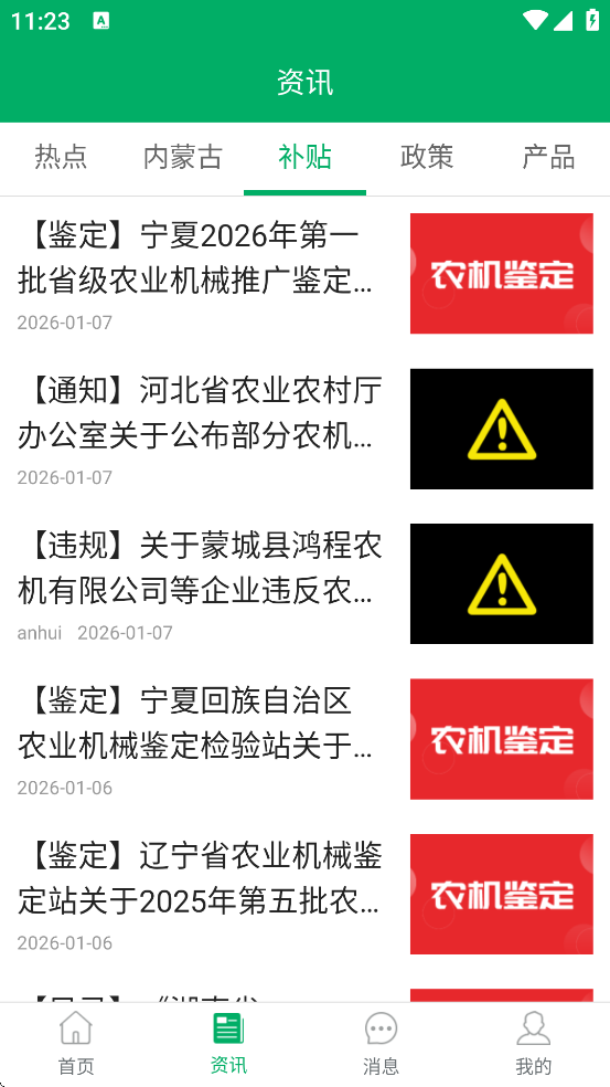 APP内可查看内蒙古自治区发布的补贴政策通知、申请流程及注意事项。
