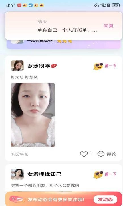 5、用户可在“广场”查看、点赞、评论他人发布的动态,或通过私信互加好友。