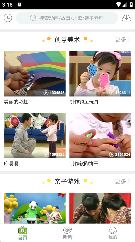 3、亲子互动资源:提供原创儿歌、亲子动画、故事音频及互动游戏,培养学习兴趣。