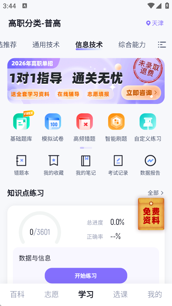 1、全科覆盖:文化素质(语文、数学、英语及综合素质)和职业技能(职业倾向性测试、职业技能测试、面试)全科优质题库,可根据自身情况及报考学校专业要求选择备考科目。