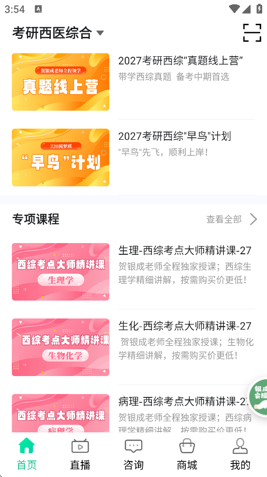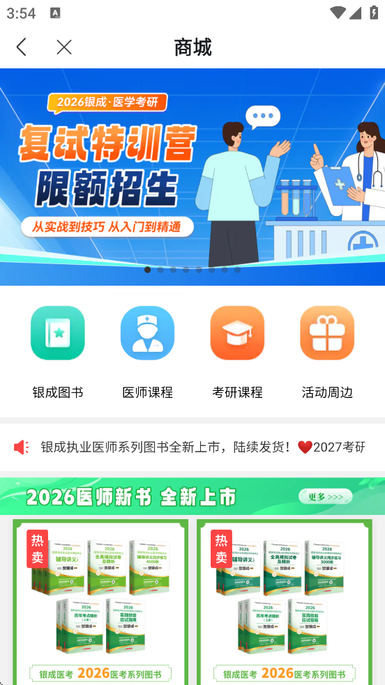 银成医考是专为医学生打造的备考神器,帮你一站式搞定执业医师、考研西医等考试!它最大的亮点是海量高清视频课和智能题库,支持离线学习,还能根据你的进度推荐内容,学习效率拉满。