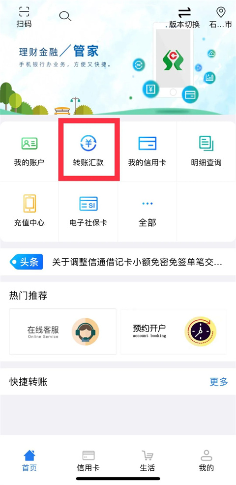 2、转账汇款:行内、跨行转账0费用实时到账,支持手机号转账,交易结果即时查询。