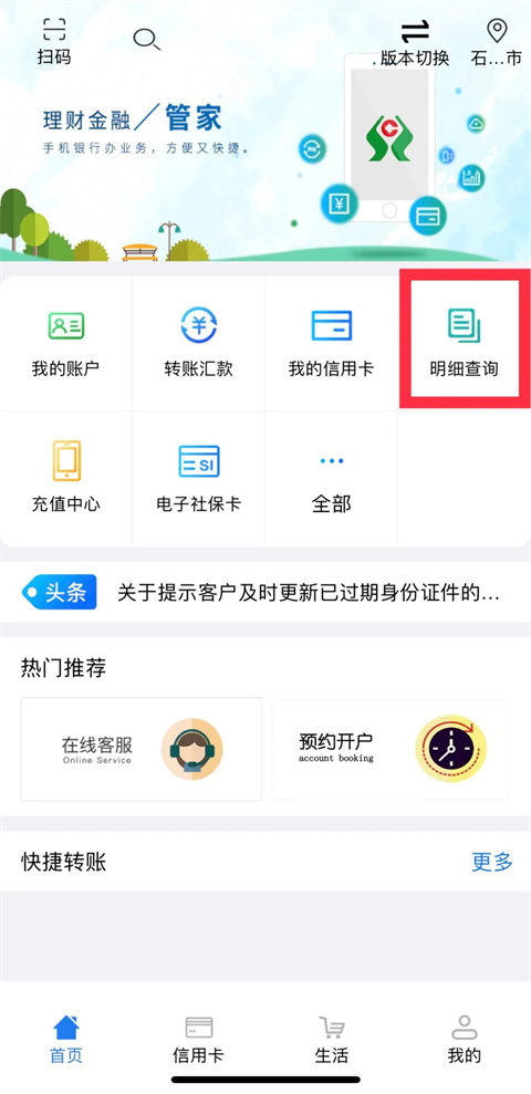 3、账户查询:首页即可查看活期/定期余额和交易明细。