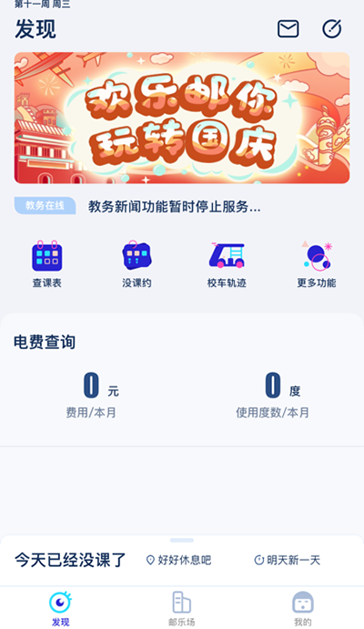 1、新增体育打卡功能,空教室功能,方便邮子们的校园生活