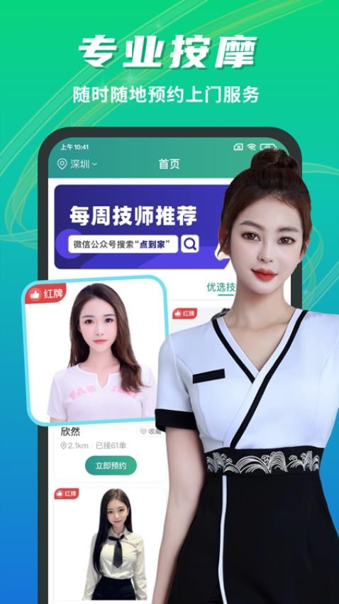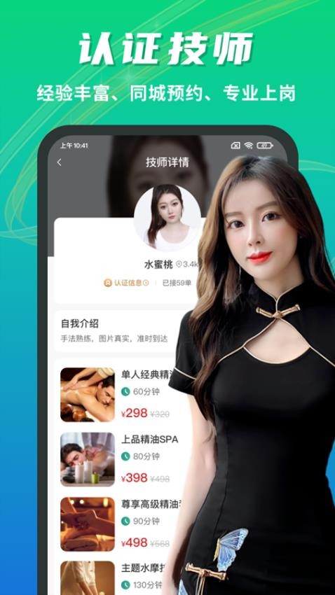 1、自营技师团队:所有技师均经过实名、证书和健康认证,具备多年行业经验。