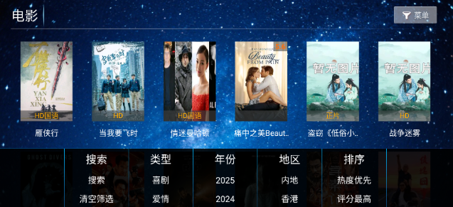 2、界面设计以简洁清爽为核心理念,摒弃冗余广告与复杂菜单,聚焦内容本身,提升大屏观看沉浸感。