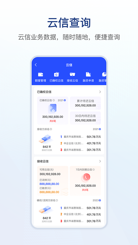 2、高效融资体验:移动端实现融资申请、审核、放款全流程,无需Ukey,刷脸即可完成。
