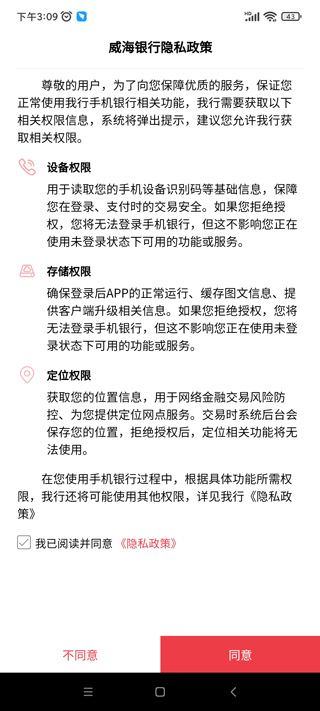 1、打开APP,阅读并同意用户协议和隐私政策。