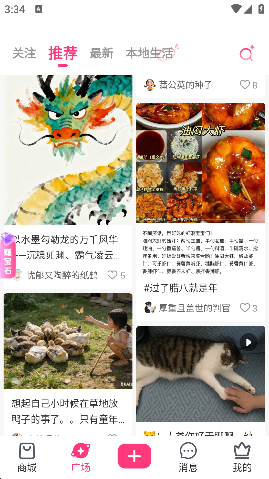 4、沉浸式浏览体验:采用"双列瀑布流"布局,优化信息展示效率和视觉统一性。