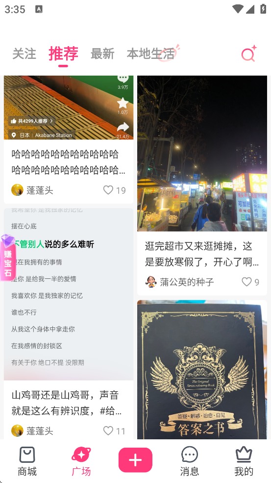 点击首页「+」按钮,选择「短视频」或「图文」,使用内置「文字卡片模板」(8.0新功能)快速生成专业排版内容,带话题如#我的健康日常,可获得首页推荐流量加权。