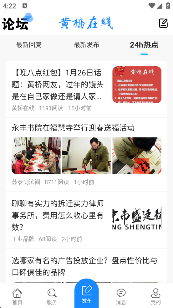 浏览资讯与活动:首页会自动推送黄桥本地最新热点、新闻和活动。
