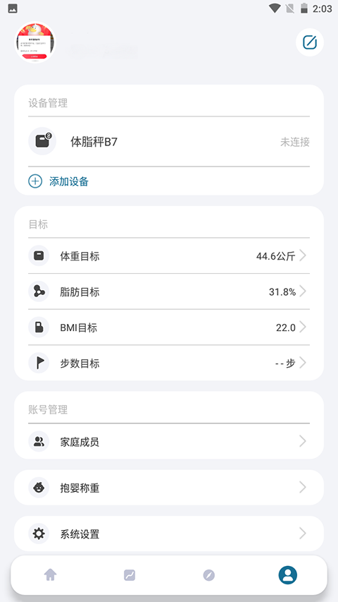 3、高精度数据测量:连接香山智能体脂秤,测量数据精准,可直观了解体重和体质变化。